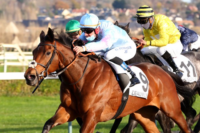 Settled in second place early, Stylistique (pic Equidia) was ridden along into the home straight and after reaching the lead 200m out staved off the challenges of Perfect Inch (Dark Angel) and the favourite Vadsena (Siyouni) to score by 1-1/4 lengths.